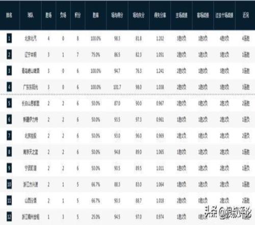 CBA积分榜:北京队4连胜领跑,辽宁险胜暂升第二,四川队4连败