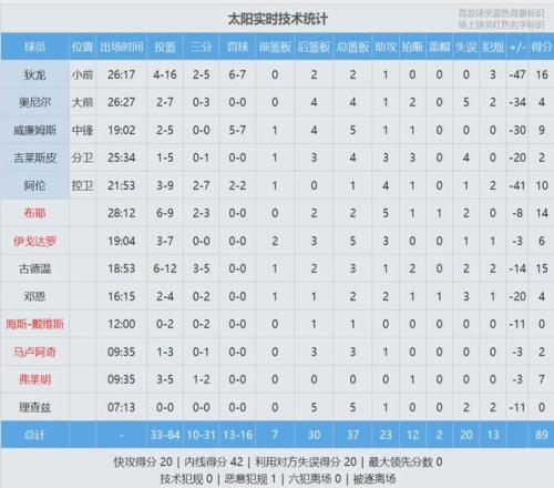 狄龙身背2犯,太阳也不敢换下。首节狄龙打了9分钟,5投1中仅得到4分1助攻。雷霆首节狂轰38分,太阳只得到23分,一节就打花了。雷霆本赛季场均能轰下123分,联盟第二,仅次于掘金的125分。场均失分106.9,联盟第一!