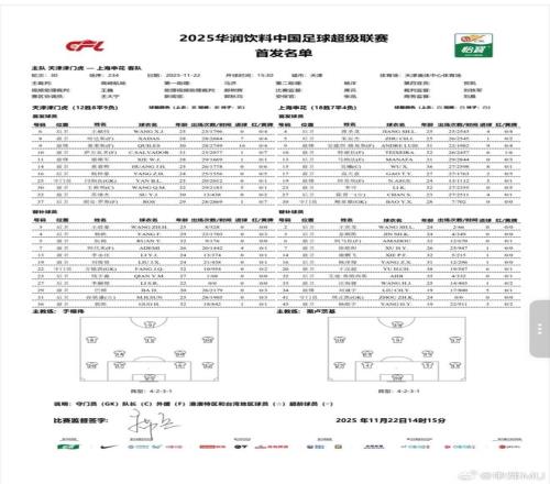 北京时间11月22日15:30,中超第30轮同时开战,上海申花作客天津奥体中心体育场挑战天津津门虎,本场主裁判为高崎航地(日本),VAR裁判为王巍,赛前双方首发出炉。